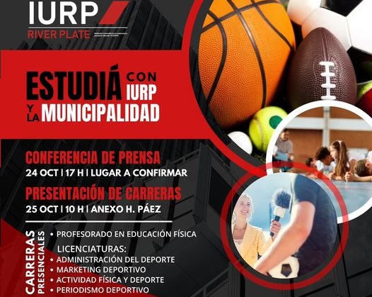 la Municipalidad de 28 de Noviembre, invita a la comunidad a conocer las carreras presenciales que ofrece el Instituto Universitario River Plate. El 24 y 25 de octubre se llevarán a cabo actividades i...
