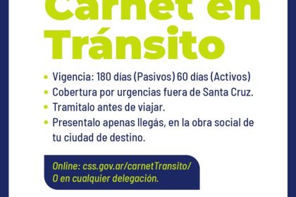 La Caja de Servicios Sociales informa que el carnet en tránsito es el documento obligatorio para garantizar la cobertura de urgencias y emergencias durante estadías temporales fuera de la provincia. S...