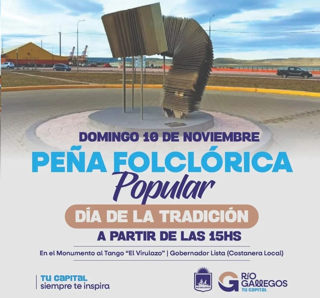 La ciudad de Río Gallegos se prepara para celebrar el Día de la Tradición con una gran Peña Folclórica Popular el próximo domingo 10 de noviembre, a partir de las 15:00 horas, en el Monumento al Tango...