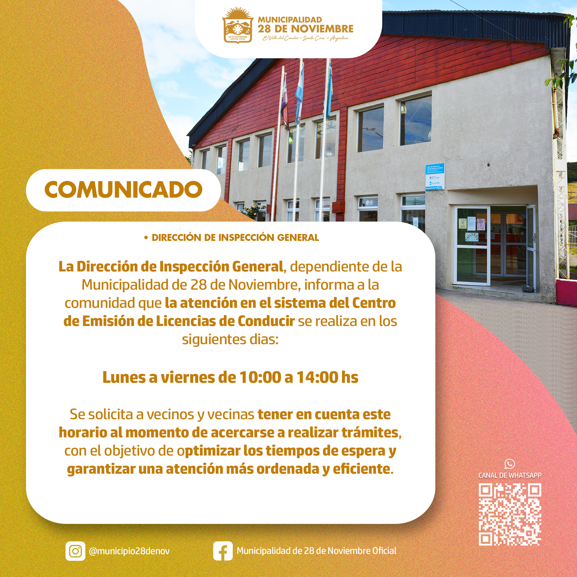 Solicitamos a vecinos y vecinas tener en cuenta este horario al momento de realizar sus trámites, para una mejor organización y una atención más ágil.