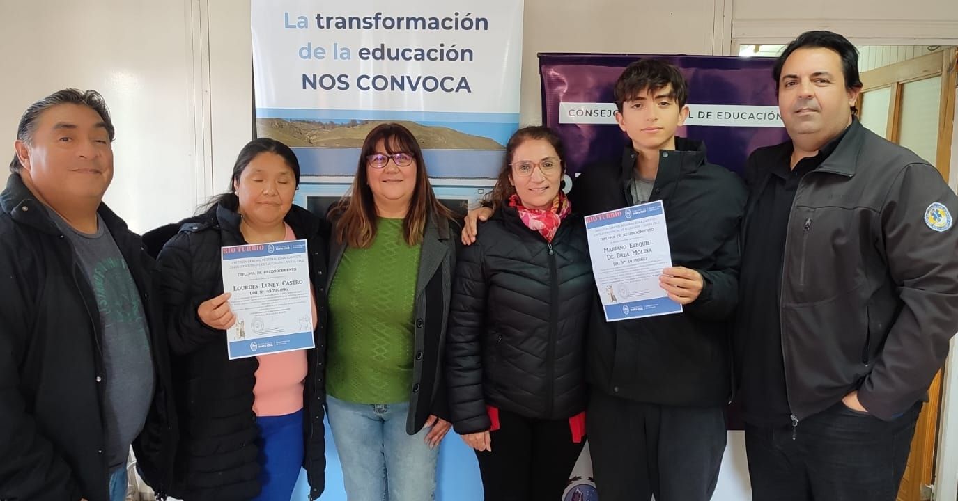 La directora regional de Educación Zona Sudoeste, Verónica Pávez, entregó diplomas a tres jóvenes de Río Turbio por su participación destacada en la Expo Carreras 2025.