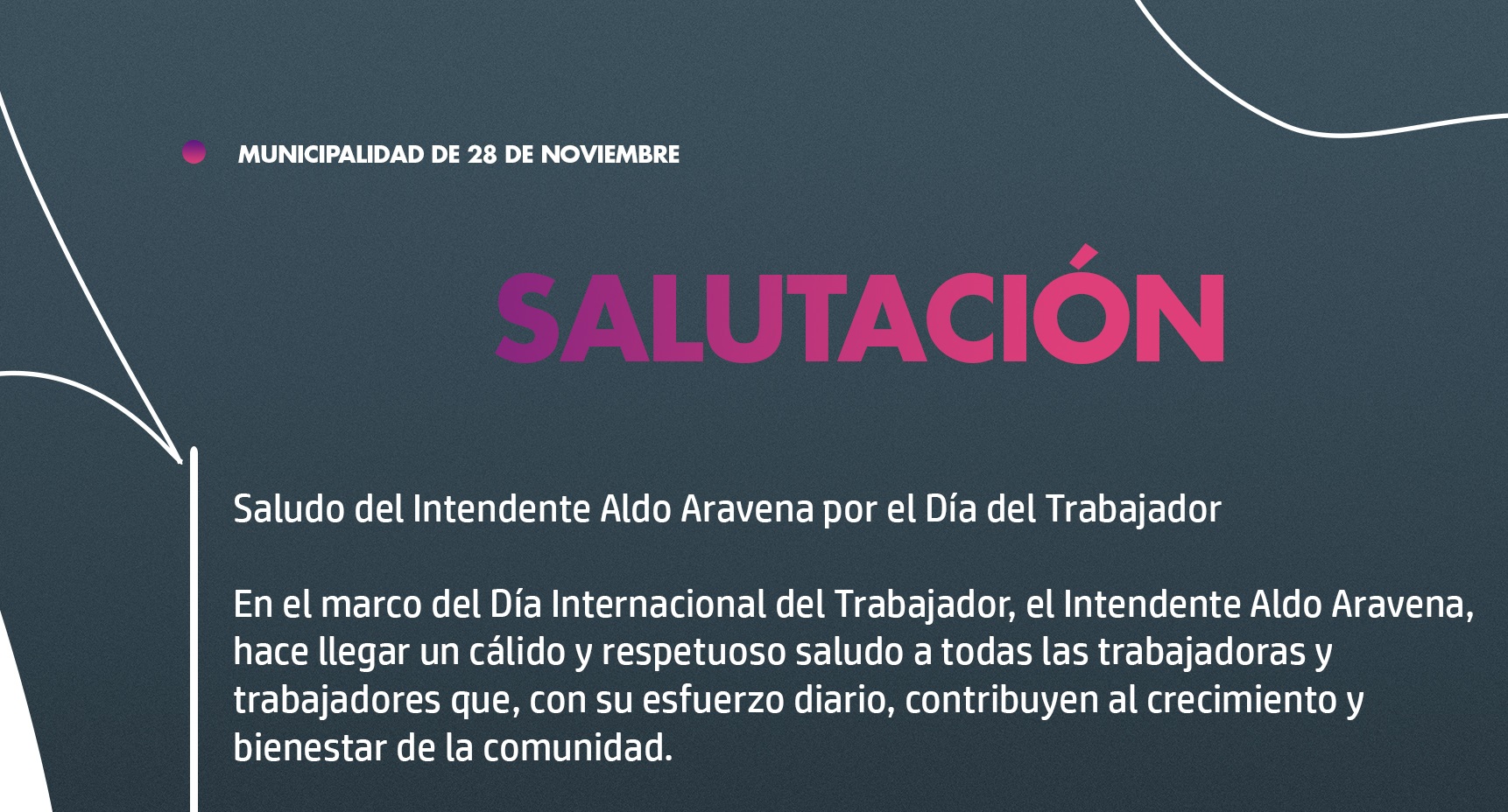 En el marco del Día Internacional del Trabajador, el Intendente Aldo Aravena, hace llegar un cálido y respetuoso saludo a todas las trabajadoras y trabajadores que, con su esfuerzo diario, contribuyen al crecimiento y bienestar de la comunidad.