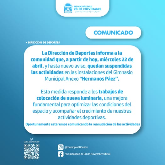 Suspension de actividades en gimnasio municipal “Hermanos Paez”