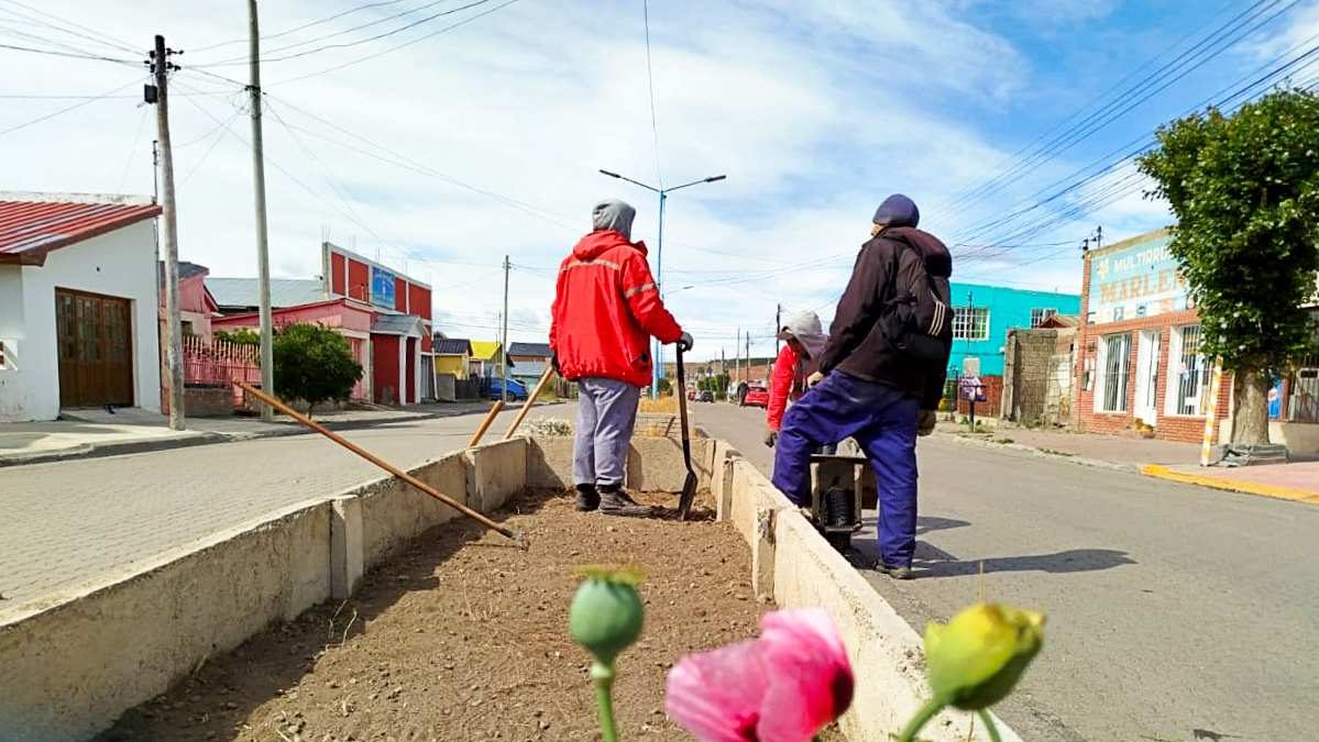 El Departamento de Espacios Públicos continúa trabajando en el embellecimiento de nuestra localidad. En esta oportunidad, las tareas se concentran en los canteros de la Avenida Antártida Argentina, donde el personal municipal realiza trabajos de mantenimiento, retirando el pasto seco para favorecer el crecimiento de las flores y plantas.