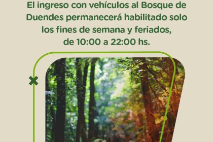 El ingreso con vehículos al Bosque de Duendes permanecerá habilitado solo los fines de semana y feriados, de 10:00 a 22:00 hs. Se solicita a quienes visiten el lugar tener en cuenta las siguientes rec...