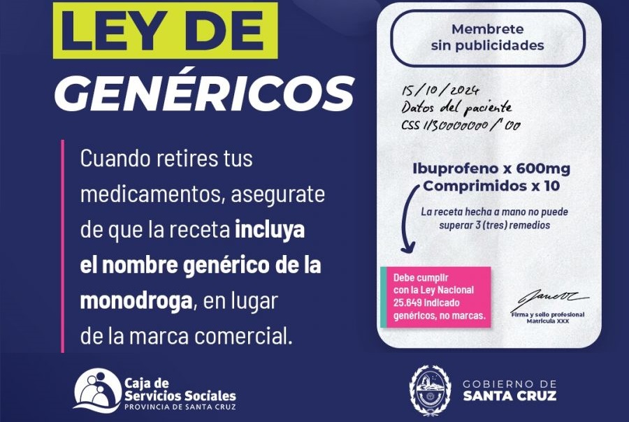 La Ley Nacional de Genéricos, bajo el número 25.649, establece que se receten medicamentos por el nombre de la droga y no por su nombre comercial. Esto permite que los pacientes puedan acceder a medicamentos más económicos y con la misma eficacia que las marcas comerciales.